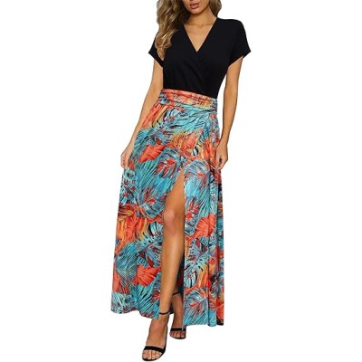 Women's Summer 2025 Maxi Dress Holiday Floral Spaghetti Strap Spring Casual Bohemian Slit Beach Long Flowing Tank Dress